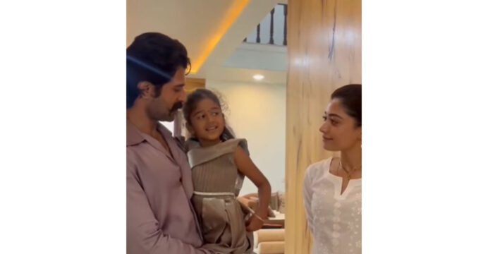 Vijay is seen holding the child affectionately, while Rashmika serves her laddoos and plants a gentle kiss on her forehead. Vijay also served her rice.