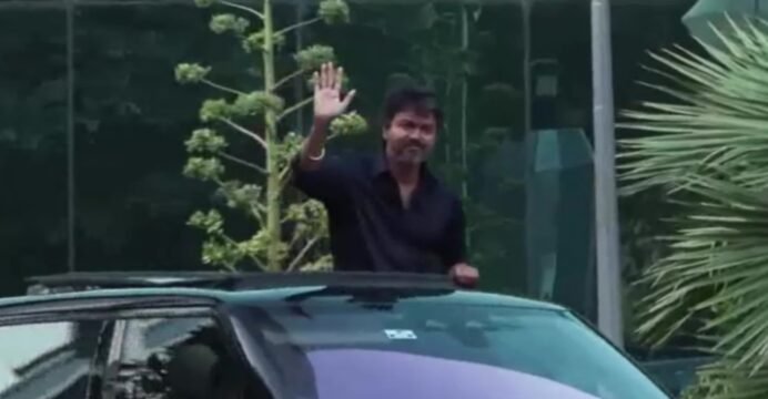 Waving from his car’s sunroof, TVK Chief Vijay leaves from CBI headquarters after questioning in Karur stampede case