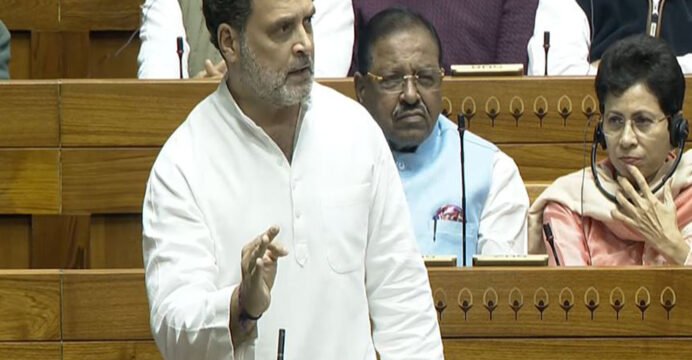 Rahul Gandhi faced interruptions during his speech, with BJP members stating that he is deviating from the subject of the debate.