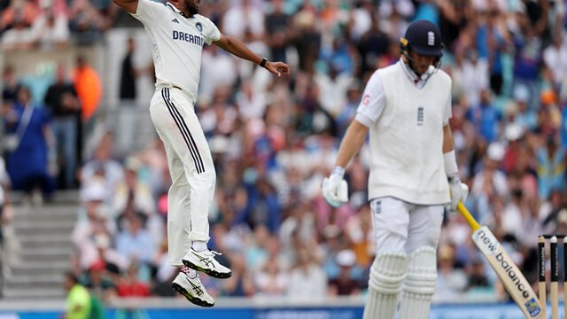 The faint hope for India continued, as Prasidh cleaned up Jacob Bethell for a single-digit score. England was 332/5. Root survived some close leg-before-wicket calls, with India giving their all, especially Mohammed Siraj.
