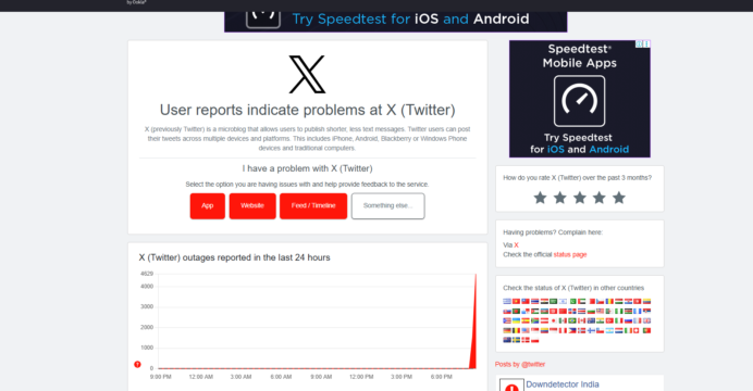According to Downdetector, the outage initially affected over 4,500 users across India as of 8:30 PM IST. Users reported that while alerts from X were still being received, feeds were not refreshing, preventing access to the latest posts and interactions. Some users received the message, "something went wrong, try again," when attempting to refresh.