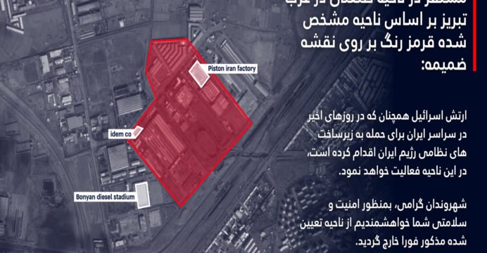 “Your life at risk”: IDF orders evacuation of Tabriz industrial zone ahead of fresh strikes in Iran