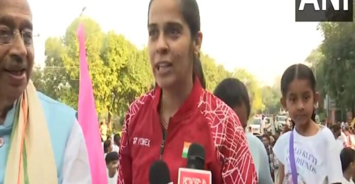 Youth turns up in large numbers as Saina Nehwal lead marathon in Delhi